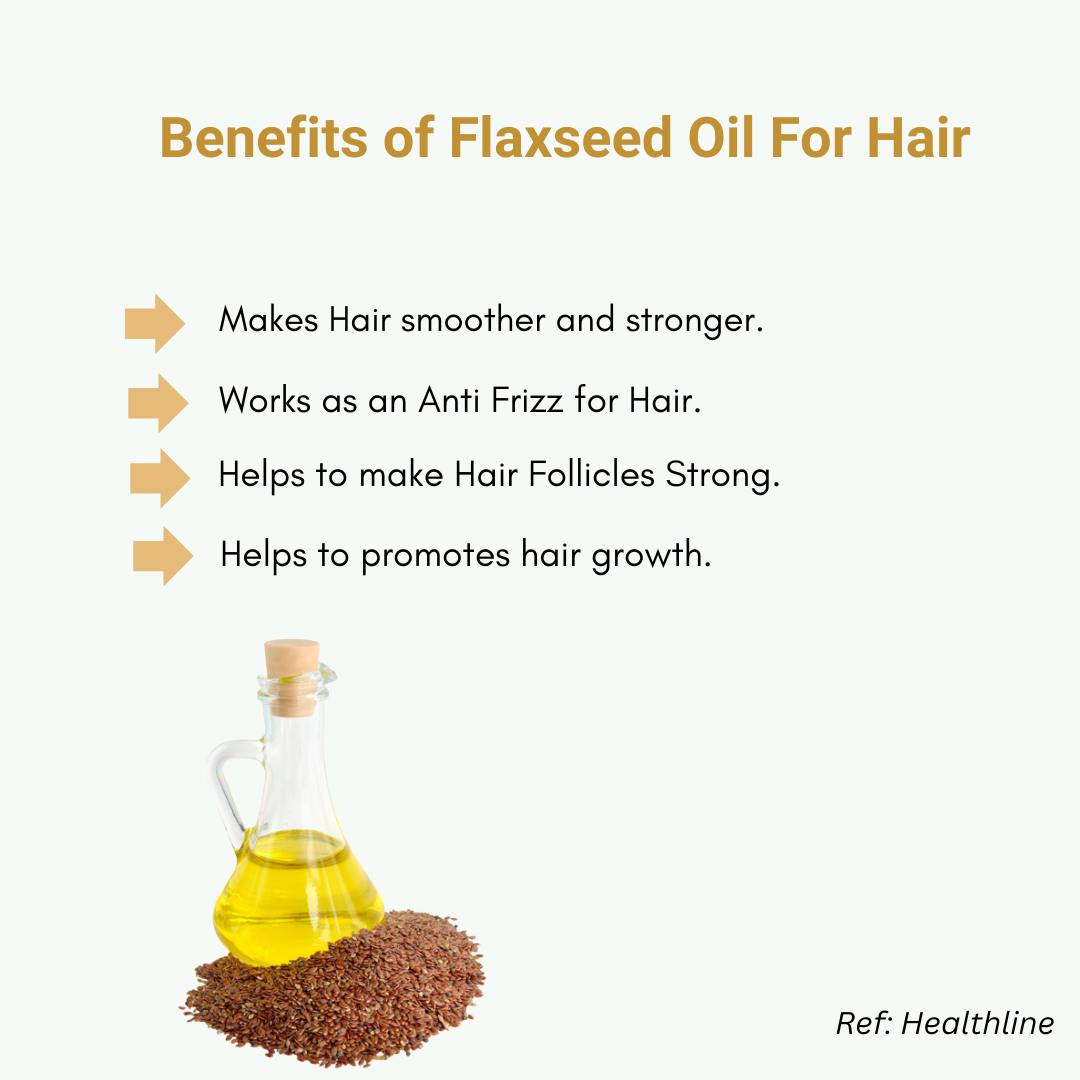 - Styling Aid:- Use flaxseed oil as a natural styling aid for taming frizz. Rub a small amount between your palms and apply it to your hair before styling.