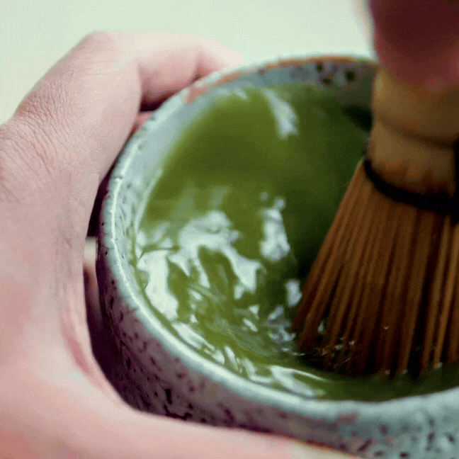 Preparation: Whisk MATCHA with hot water, add steamed milk, and sweeten with honey.
