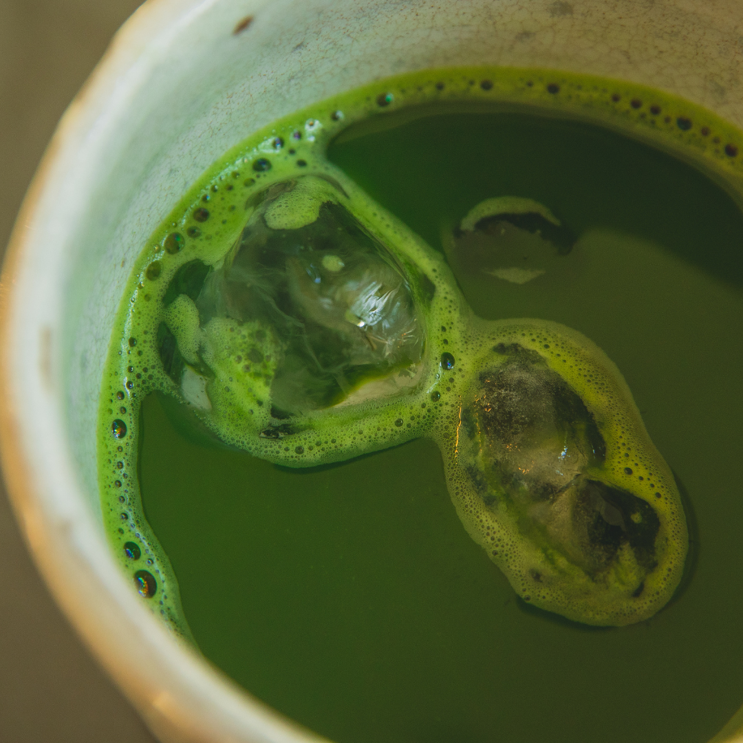 Preparation: Whisk MATCHA with chilled water, add mint leaves and honey. Pour over ice.