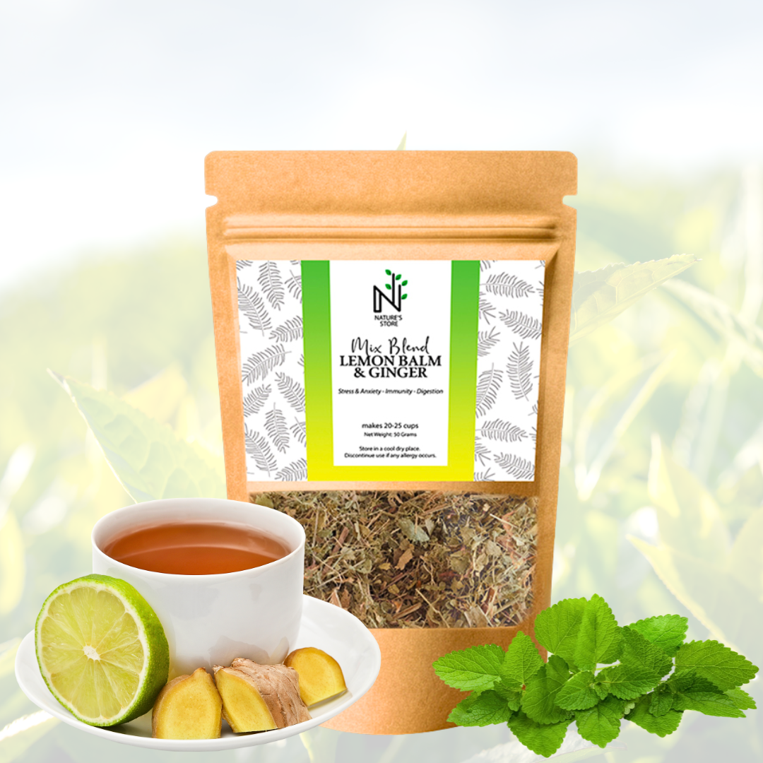 A blend of Lemon Balm, Peppermint, Turmeric, Ginger, Lemongrass & Cinnamon.