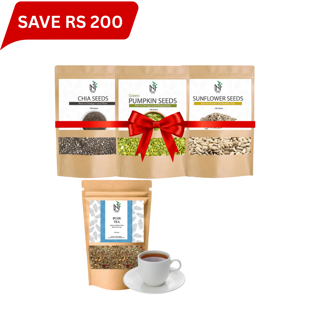 | Products & Qty | PCOS Tea (50 grams) + Pumpkin Seeds (100 grams) + Sunflower Seeds (100 grams) + Chia Seeds (100 grams) |