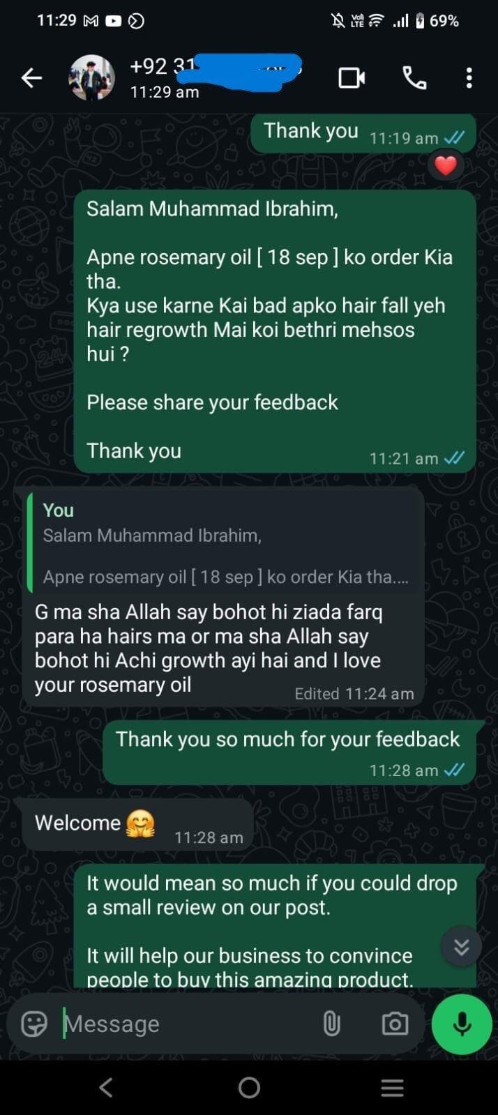 MashAllah bohat acha oil hai, zabardast. Meray hair main regrowth bhe huehai, I love your Rosemary Oil.