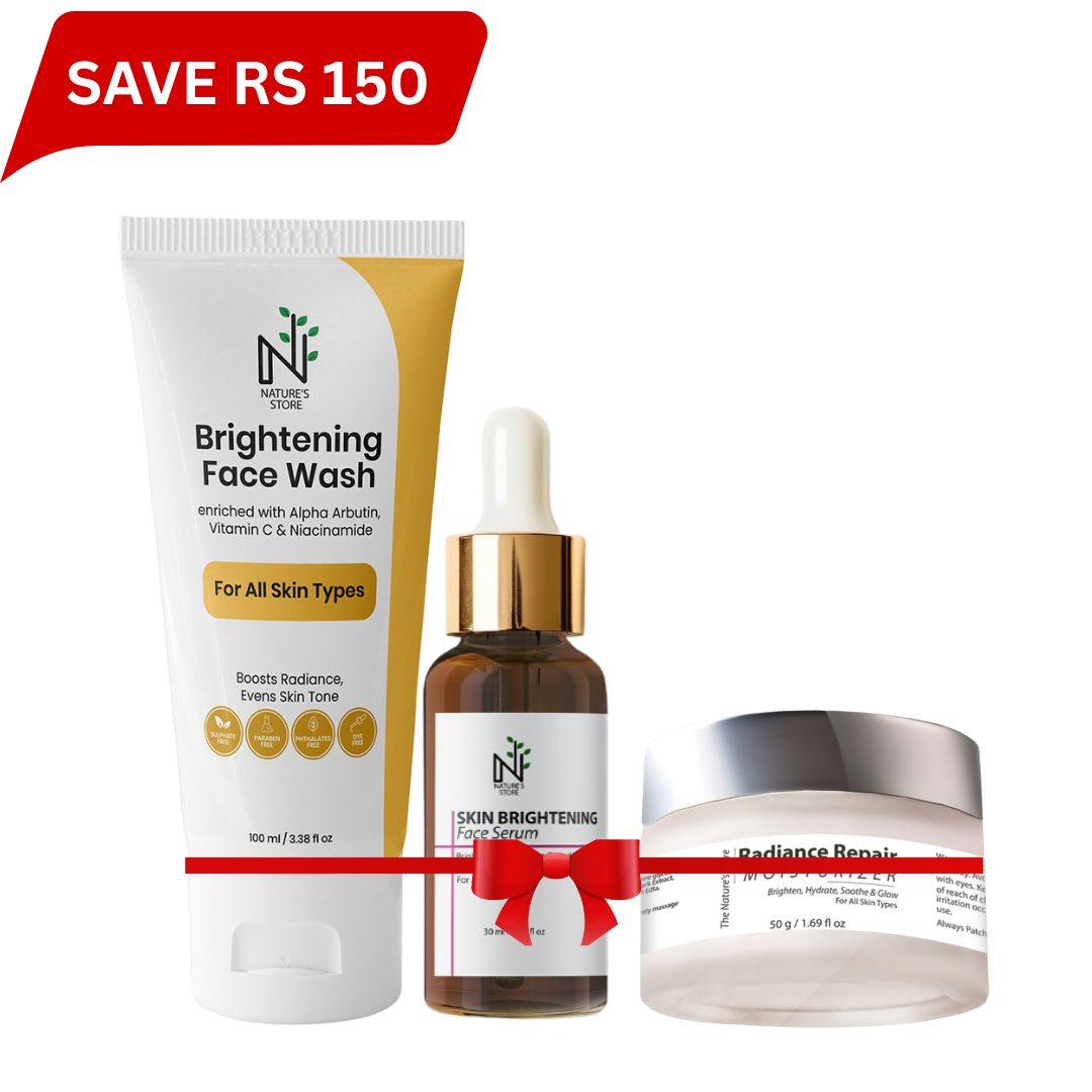 - Follow with a Skin Brightening Serum, Moisturizer, and Hydrating sunscreen (in the morning) to protect and hydrate your skin.